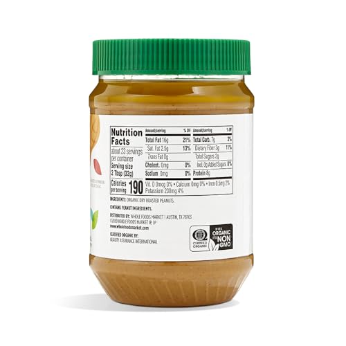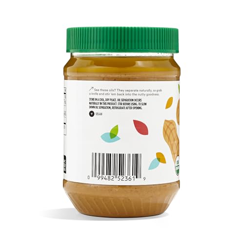 365 by Whole Foods Market, Organic Creamy Unsweetened No Salt Peanut Butter, 26 Ounce