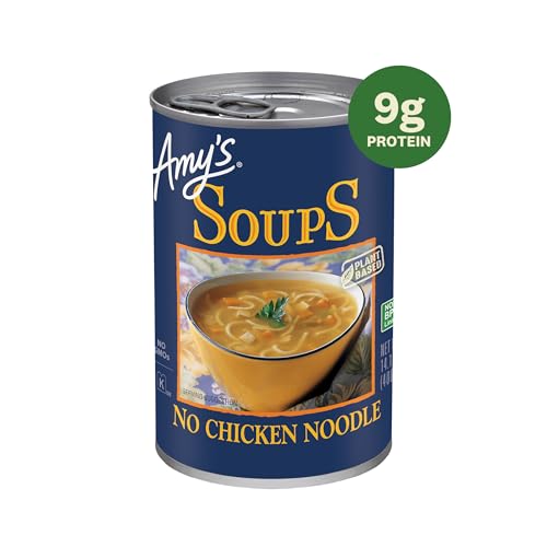 Amy’s Soup, Vegan No Chicken Noodle Soup, With Organic Noodles, Vegetables and Tofu, Canned Soup, 14.1 Oz (12 Pack)