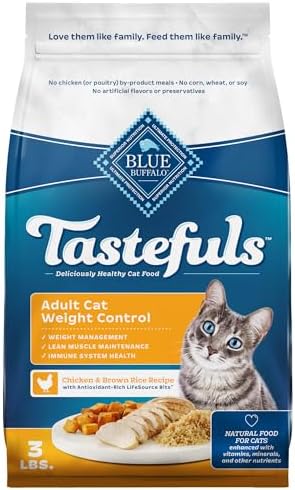 Blue Buffalo Tastefuls Adult Dry Cat Food for Weight Management, Made in the USA with Natural Ingredients, Chicken Recipe, 3-lb. Bag