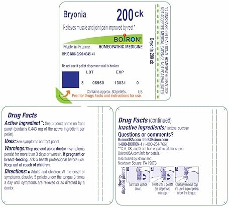 Boiron Bryonia 200Ck Homeopathic Medicine for Muscle & Joint Pain – 80 Pellets