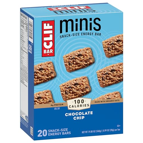CLIF BAR Minis – Chocolate Chip – Made with Organic Oats – 4g Protein – Non-GMO – Plant Based – Snack-Size Energy Bars – 0.99 oz. (20 Pack)