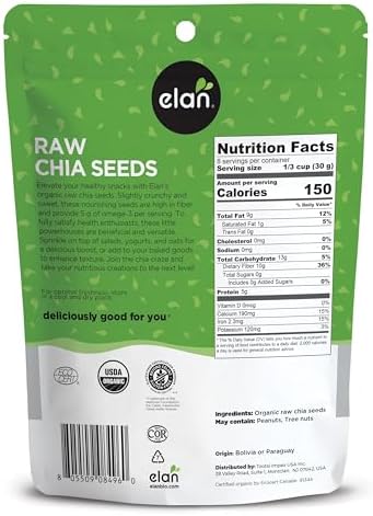 NUTRITIOUS SUPERFOOD: Elevate your healthy snacks with Elan Organic Chia Seeds. These small crunchy seeds gel easily, offering a nutritious boost to your creations
