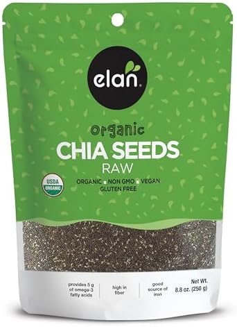 Elan Organic Chia Seeds, 8.8 oz, Natural Raw Black Chia Seeds, Plant-Based, Non-GMO, Vegan, Gluten-Free, Kosher, Gels Easily, Superfood