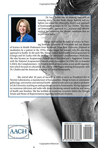 Dr. Luc Chaltin was an amazing man with an amazing story. In this book, Marge Roberts will enlighten you about the philosophy, theory and approach to homeopathy as taught by Dr. Luc Chaltin. The clinical homeopathic approach is a practical and effective method for addressing the chronic conditions that are so prevalent today.