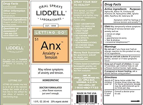 Liddell Letting Go – Homeopathic Remedies – Oral Spray for Symptoms of Anxiousness, Stress and Restlessness – Natural Calm Spray – 1.0 fl. Oz.