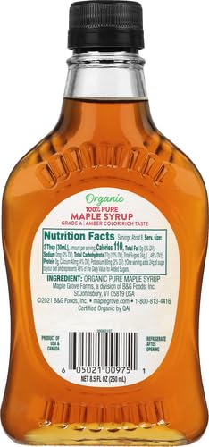 Grade A organic amber color maple syrup with a rich taste