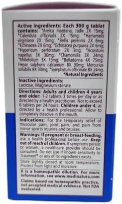 MediNatura Traumeel Homeopathic Arnica + 13 Active Ingredients for Muscle, Joint, Back, Arthritis, Injury, Exercise Related Pain & Soreness – Made in Germany – 100 Tablets