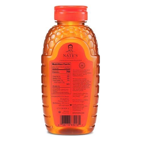 Nate’s 100% Pure, Raw & Unfiltered Honey – Award-Winning Taste, 16 oz. Squeeze Bottle