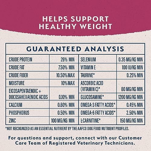 Low calorie recipe made with chicken meal and salmon meal for great tasting nutrition. A special blend of fiber to help dogs feel fuller longer and support healthy digestion and targeted levels of L-Carnitine to help maintain a healthy weight. A special fiber blend helps dog’s feel full and satisfied. Formulated with superfoods and guaranteed levels of antioxidant vitamins and minerals to help maintain a healthy immune system. Made with wholesome grain.