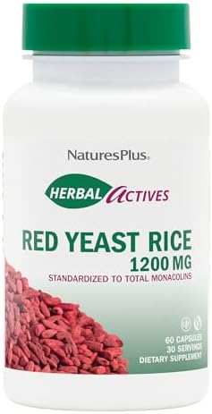 Natures Plus Herbal Actives Red Yeast Rice – 1200 mg, 60 Vegan Capsules – Maximum Potency Herbal Supplement, Cholesterol Support – Vegetarian, Gluten-Free – 30 Servings