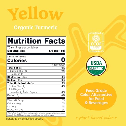 Nutricost Yellow Plant Based Food Coloring From Organic Turmeric Powder (70 Servings) – Nutricolor Color Alternative For Food & Beverages