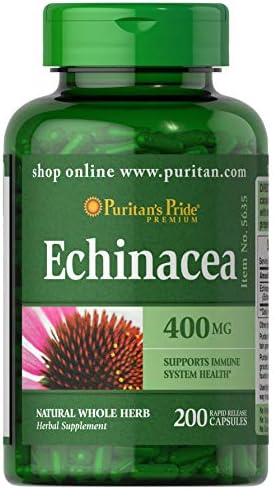 Puritan’s Pride Premium Echinacea Natural Whole Herb Herbal Supplement 400mg, Dietary Supplement for Health, Immune System Support, 200 Rapid Release Capsules