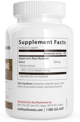 Real Mushrooms Lions Mane Supplement Capsules – Mushroom Supplement for Overall Wellness with Verified Beta Glucans – Non-GMO, Vegan Mushroom Supplements in 120 Capsules
