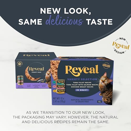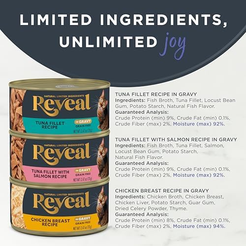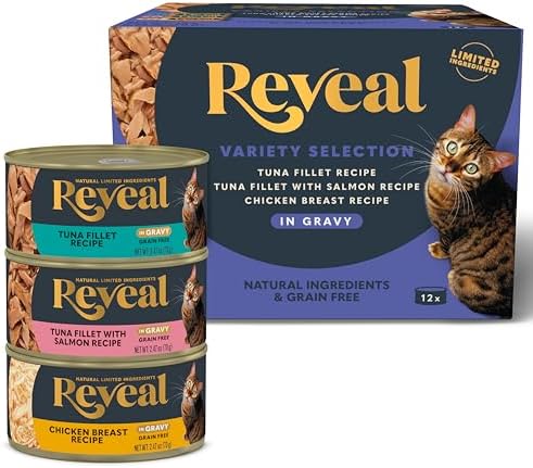 Reveal Natural Wet Cat Food, 12 Count, Grain Free, Limited Ingredient Canned Food for Cats, Fish and Chicken Variety in Gravy, 2.47 oz Cans