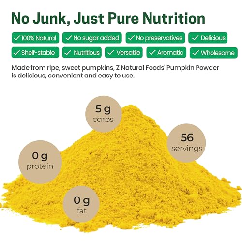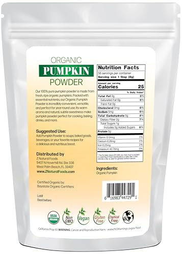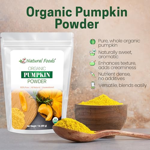 Z Natural Foods Organic Pumpkin Powder – Pure Powdered Pumpkin for Delicious Pumpkin Spice Latte, Baking, Smoothies, Juice, Puree – Dried Sweet Vegan Pumpkin Powder, Gluten Free, Kosher, 1 lb