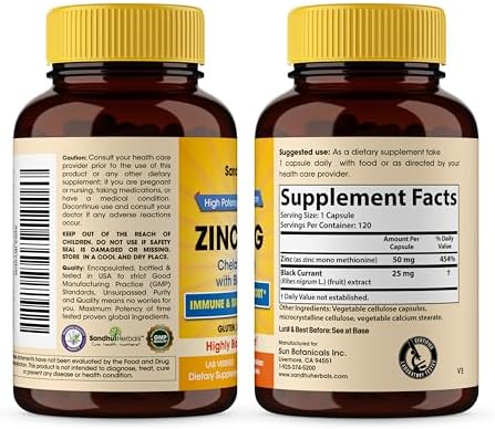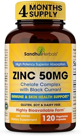 Zinc Supplements for Men and Women | Zinc 50mg with Black Currant 120 Vegetarian Capsules | Highly Absorbable Form for Immune Support | Zink 50 mg Supplement Promotes Skin Health